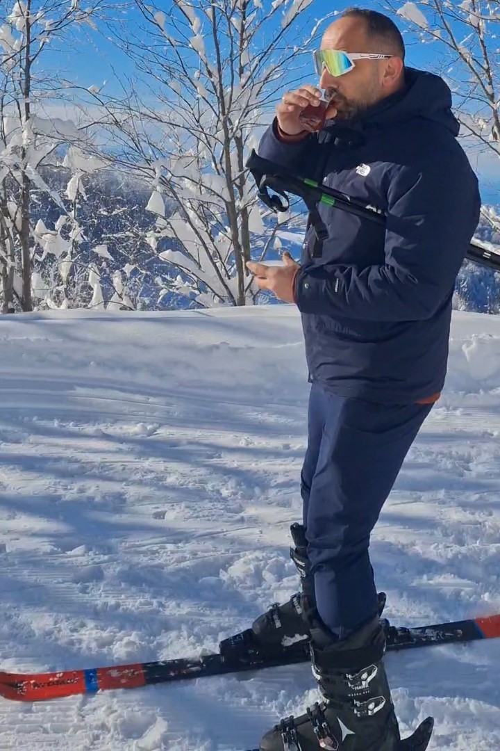 Kar keyfi yapanlar arasında yer alan Ersin Kalender, sıra dışı bir anın kahramanı oldu. Kayak yaparken elindeki ince belli bardakta çay içen Kalender, hem eğlendi hem de manzaranın tadını çıkardı. O anlar çevredekiler tarafından cep telefonuyla kayda alındı. Çayın Karadeniz kültüründeki yerini bir kez daha gösteren bu anlar, sosyal medyada da ilgi gördü.