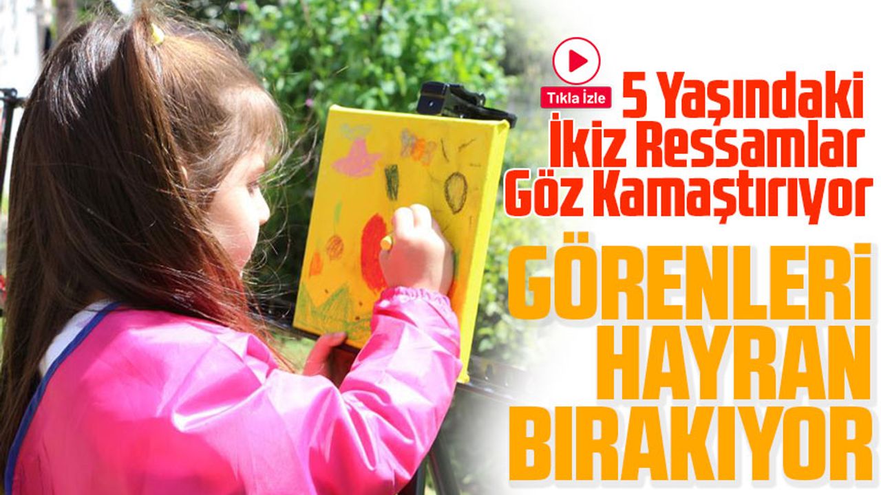 Rize'de yaşayan 5 yaşındaki ikiz kardeşler Kerem ve Beren Baş, resim yapma yetenekleriyle büyüklere taş çıkartıyor. Bir yaşından itibaren resme başlayan ve evin duvarlarını tuval olarak kullanan minikler, şimdi atölyelerinde 22 eser sergiliyorlar.