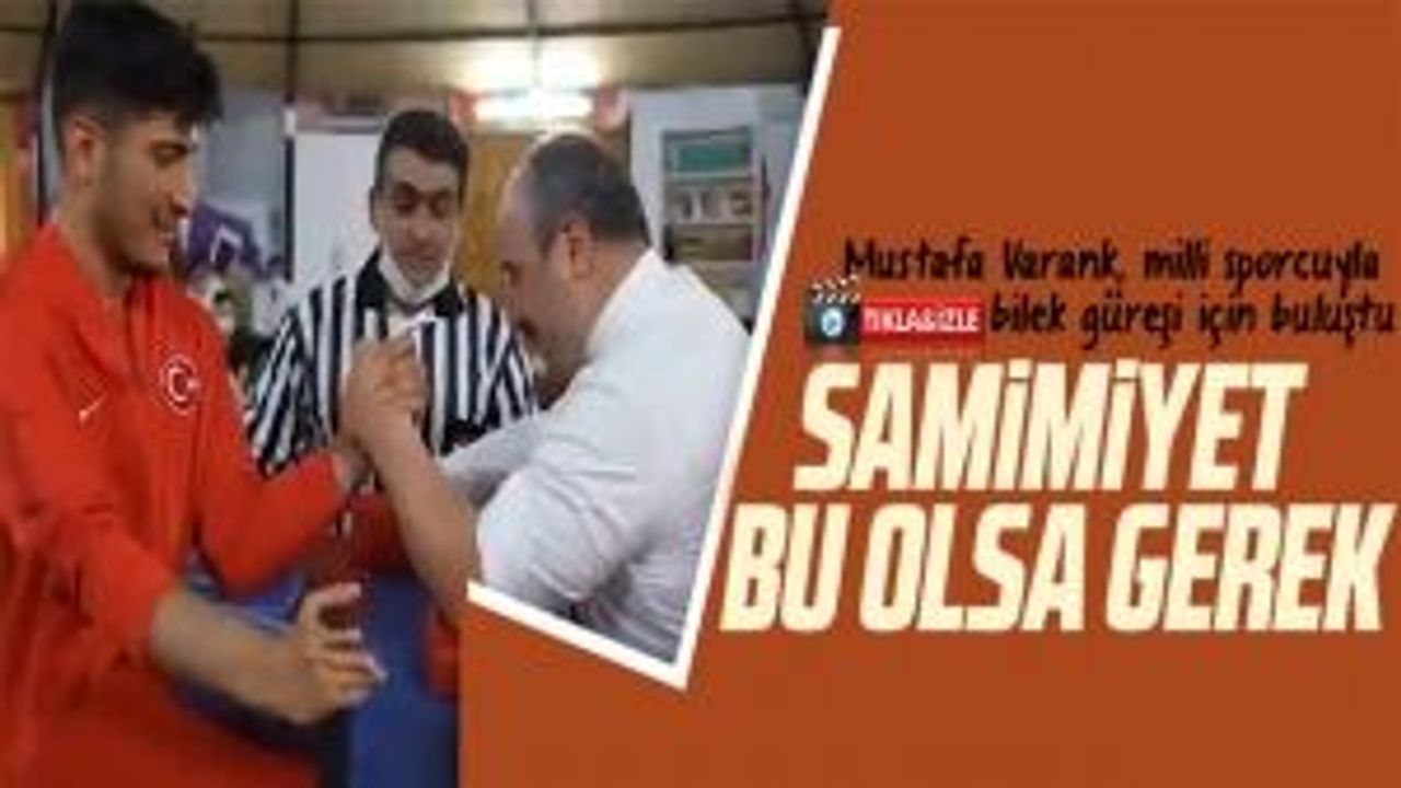 Mustafa Varank, milli sporcuyla bilek güreşi için buluştu
