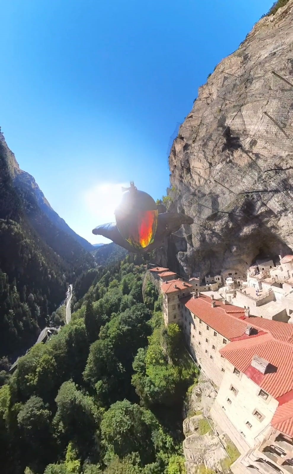 Tarihi manastır, adrenalin dolu bir uçuşa tanıklık etti