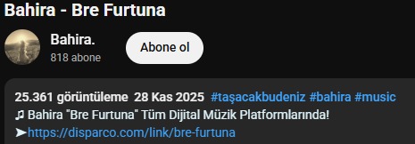 “Bre Furtuna” adlı şarkı, artık tüm dijital müzik platformlarında dinlenebiliyor. Karadeniz’e özgü melodik altyapısı, geleneksel tınılarla birleşerek dinleyicide güçlü bir bağ kurmayı başarıyor. Bahira, yayın sonrası yaptığı açıklamada, projeye katkı sunan yapımcı Sezar Esen’e de özel teşekkürlerini iletti: