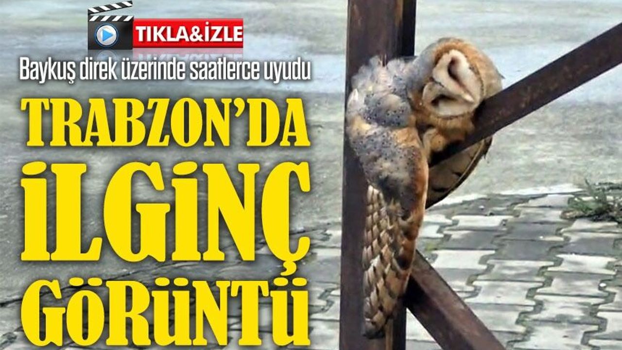 Araklı’da sevimli baykuş direk üzerinde uyuyakaldı