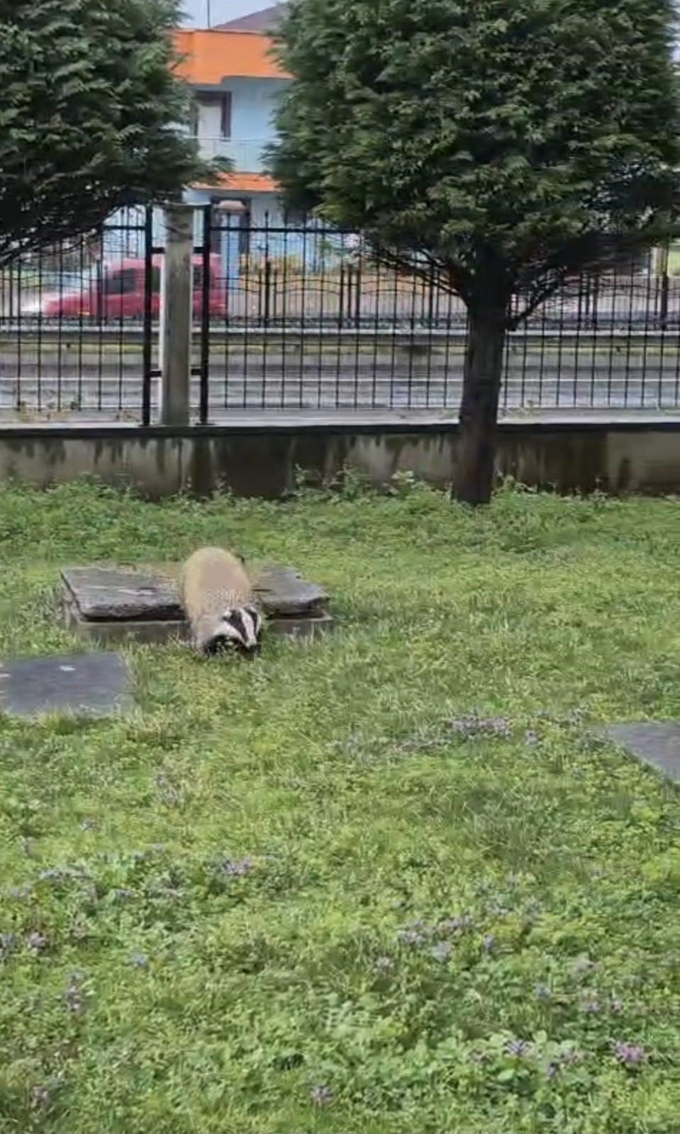Bahçeye nasıl girdiği bilinmeyen porsuk, uzun süre çıkış yolu aradı. Kapalı alan içerisinde yönünü kaybettiği düşünülen hayvanın sağa sola koşuşturması kameralara yansıdı. Görüntülerde porsuğun panik halinde hareket ettiği ve duvar kenarlarını takip ederek çıkış aradığı görülüyor.