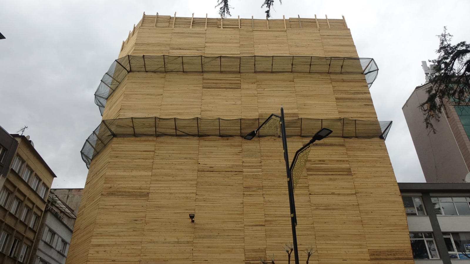 Yaşının 70’e yaklaştığını belirten Deveci, bugüne kadar kent merkezinde bu ölçekte bir kereste kaplama görmediğini vurguladı. Eleştirilerin olabileceğini ancak görüntünün kendine has bir tarafı da bulunduğunu dile getirdi. Keresteler kaldırıldıktan sonra ortaya çıkacak yeni cephe ise şimdiden merak konusu olmuş durumda.