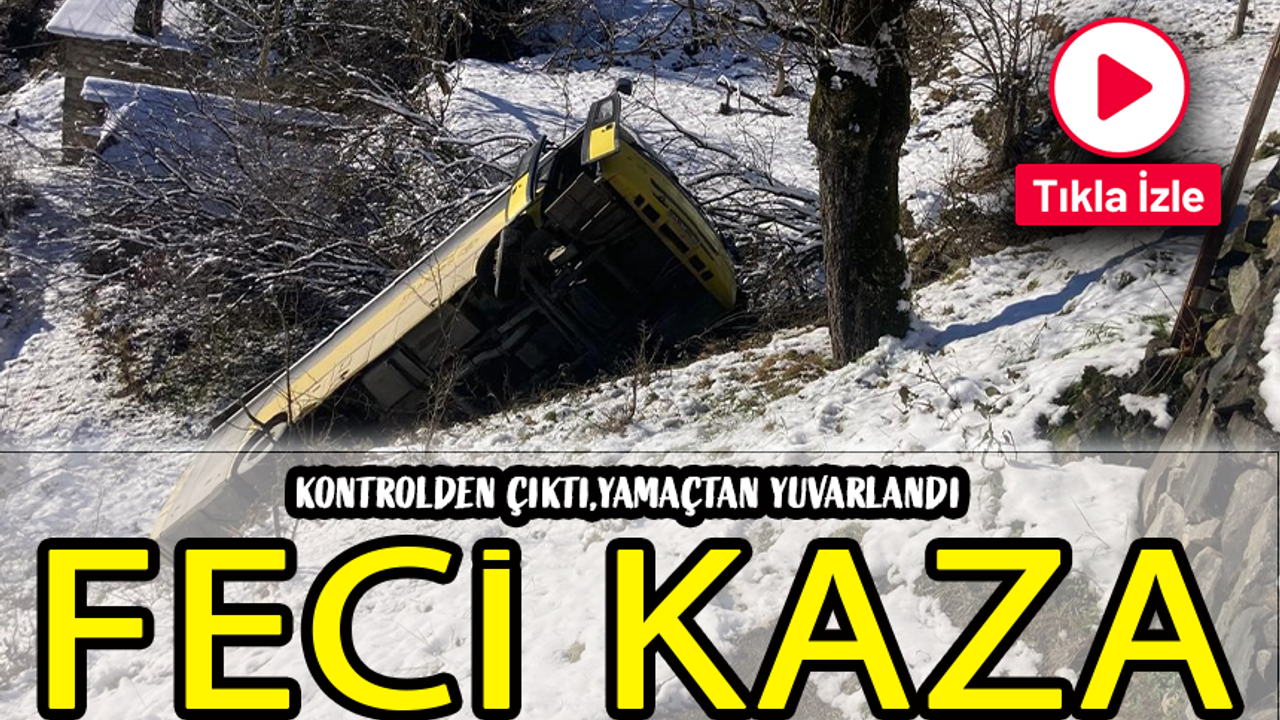 Trabzon’un Araklı ilçesinde, karlı ve buzlu yolda kontrolden çıkan belediye yolcu otobüsü, yamaçtan aşağıya yuvarlandı. Neyse ki kazada ölen ya da yaralanan olmadı, otobüsün boş olması ise sevindirici bir detay olarak kaydedildi.