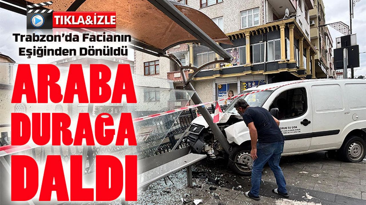 Trabzon’da Facia Kıl Payı Atlatıldı: El Freni Çekilmeyen Araç Otobüs Durağına Çarptı