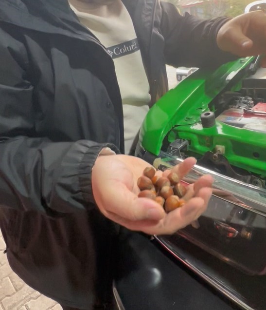 Bakım sırasında hava filtresi açıldığında ortaya çıkan manzara görenleri şaşkına çevirdi. Filtrenin içi neredeyse tamamen fındıkla doluydu. Yapılan değerlendirmede, bir sincabın off-road aracının geniş hava girişlerinden içeri girdiği ve burayı kendisine depo yaptığı belirlendi. Off-road araçlarında hava akışının güçlü olması için girişlerin geniş tutulması, sincabın içeri rahatça girmesine olanak sağladı. Kısa sürede bu kadar fındığın taşınmış olması ekip üyelerini hayrete düşürdü.
