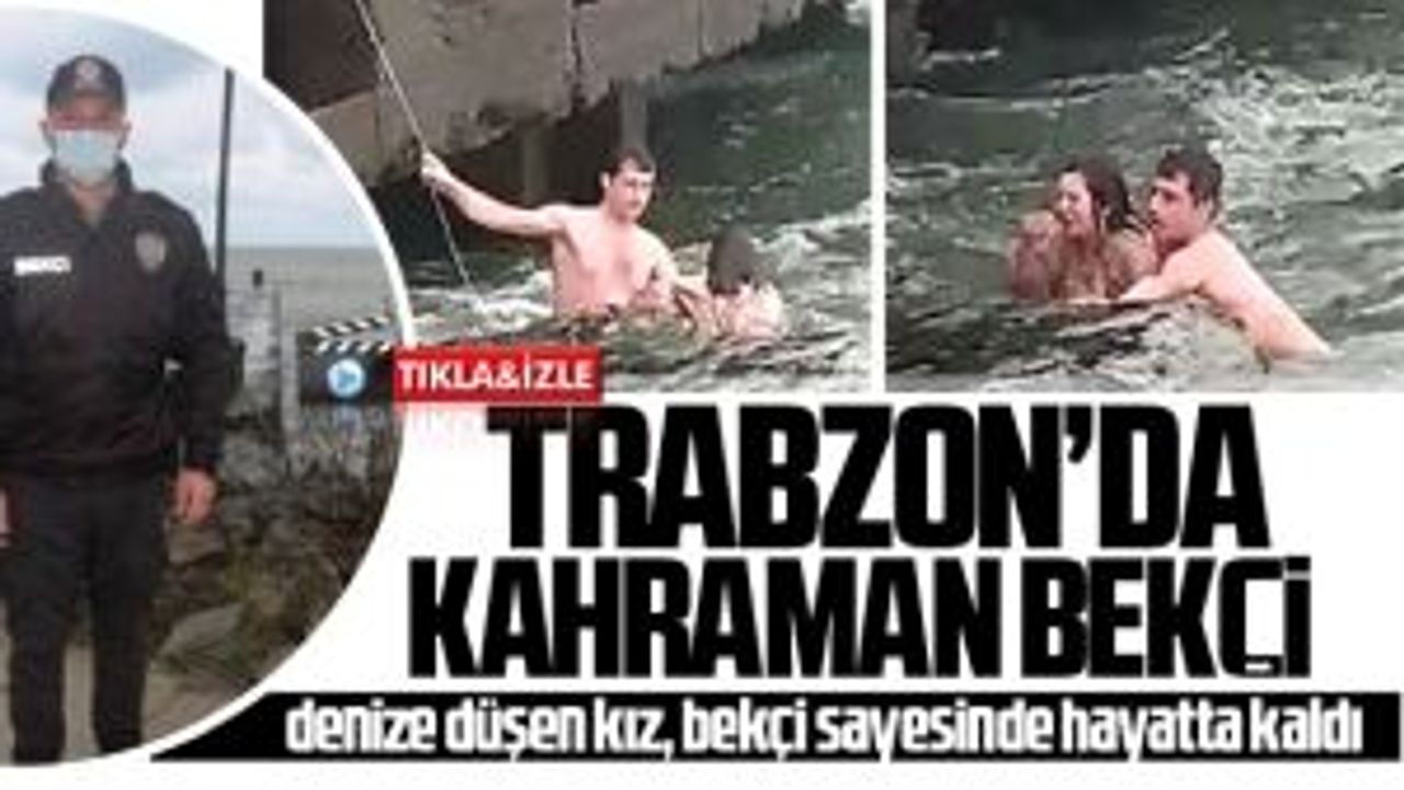 Trabzon'un Sürmene ilçesinde, iskeleden denize düşen 15 yaşındaki S.Ş. adlı kız çocuğu, suya atlayan bekçi Hasan Kulaç tarafından kurtarıldı. Kurtarma anı, cep telefonu kamerasıyla görüntülendi.