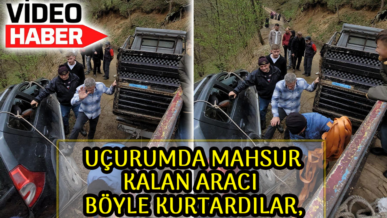 Trabzon'da Uçurumdan Mahalle Sakinlerinin Yardımıyla Kurtarılan Araç