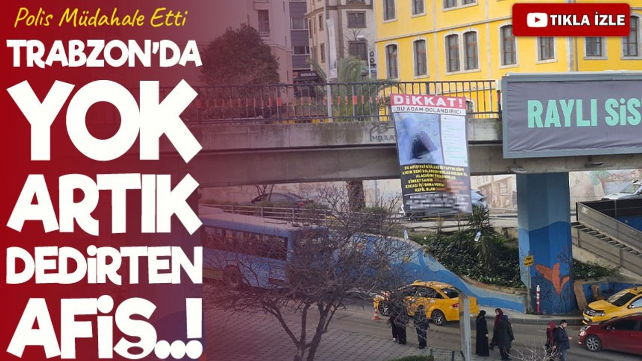 Trabzon’da bir viyadüğe asılan ve “Dikkat bu adam dolandırıcı” ifadelerinin yer aldığı afiş, kentte şaşkınlıkla karşılandı. Polis ekipleri afişi sabah saatlerinde kaldırdı.