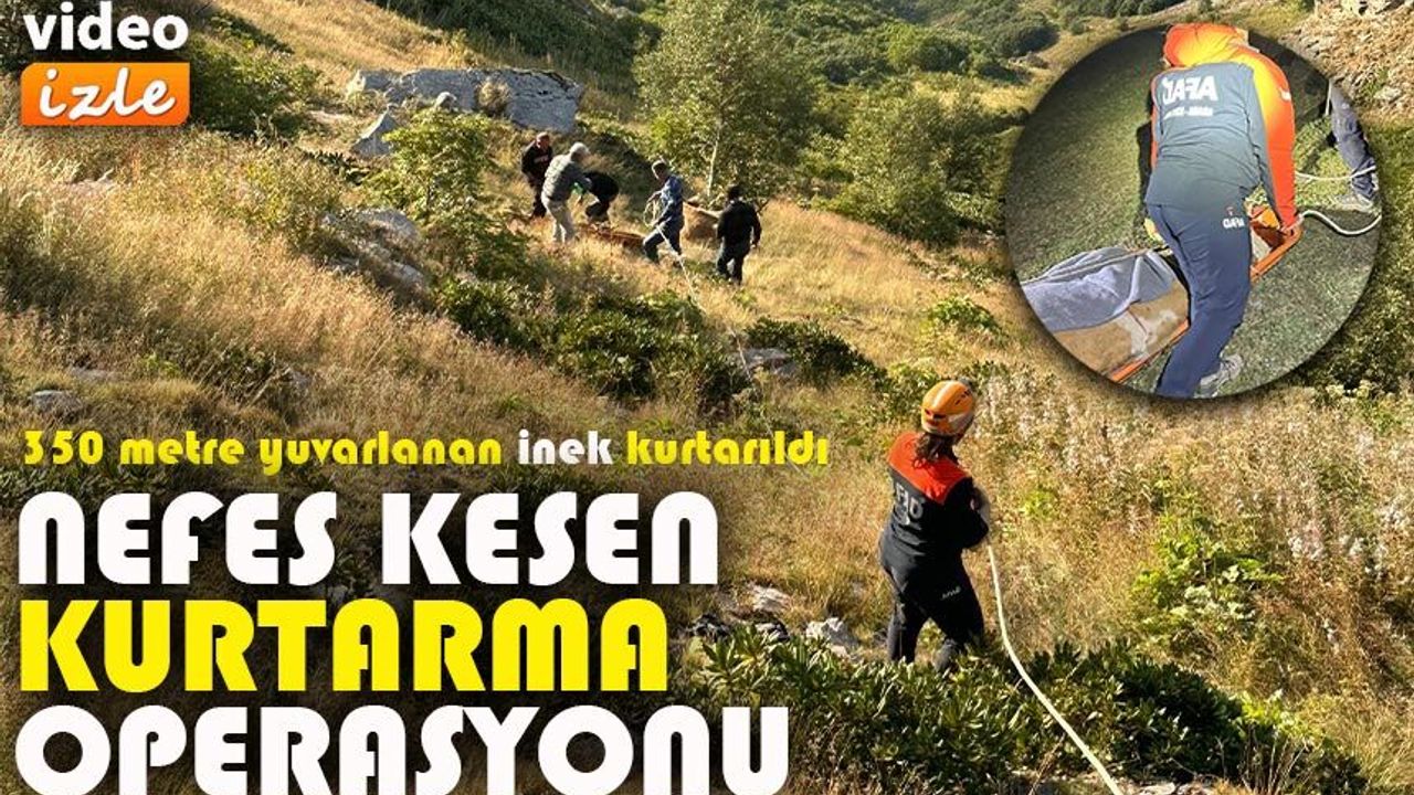 Merada otladığı sırada dengesini kaybederek 350 metrelik yamaçtan aşağıya yuvarlanan bir inek, saatler süren bir operasyonla kurtarıldı. İhbar üzerine bölgeye sevk edilen AFAD ekipleri, ip ve halat sistemleri kullanarak yaralı...