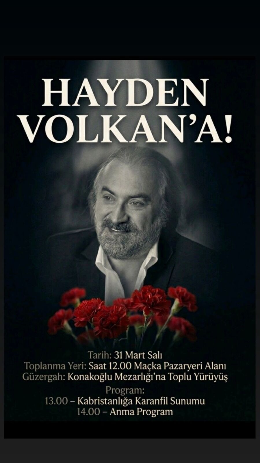 Program kapsamında katılımcılar, 31 Mart Salı günü saat 12.00’de Maçka Pazaryeri Alanı’nda toplanacak. Buradan hareket edecek kalabalık, yürüyüş eşliğinde Konakoğlu Mezarlığı’na ulaşacak.