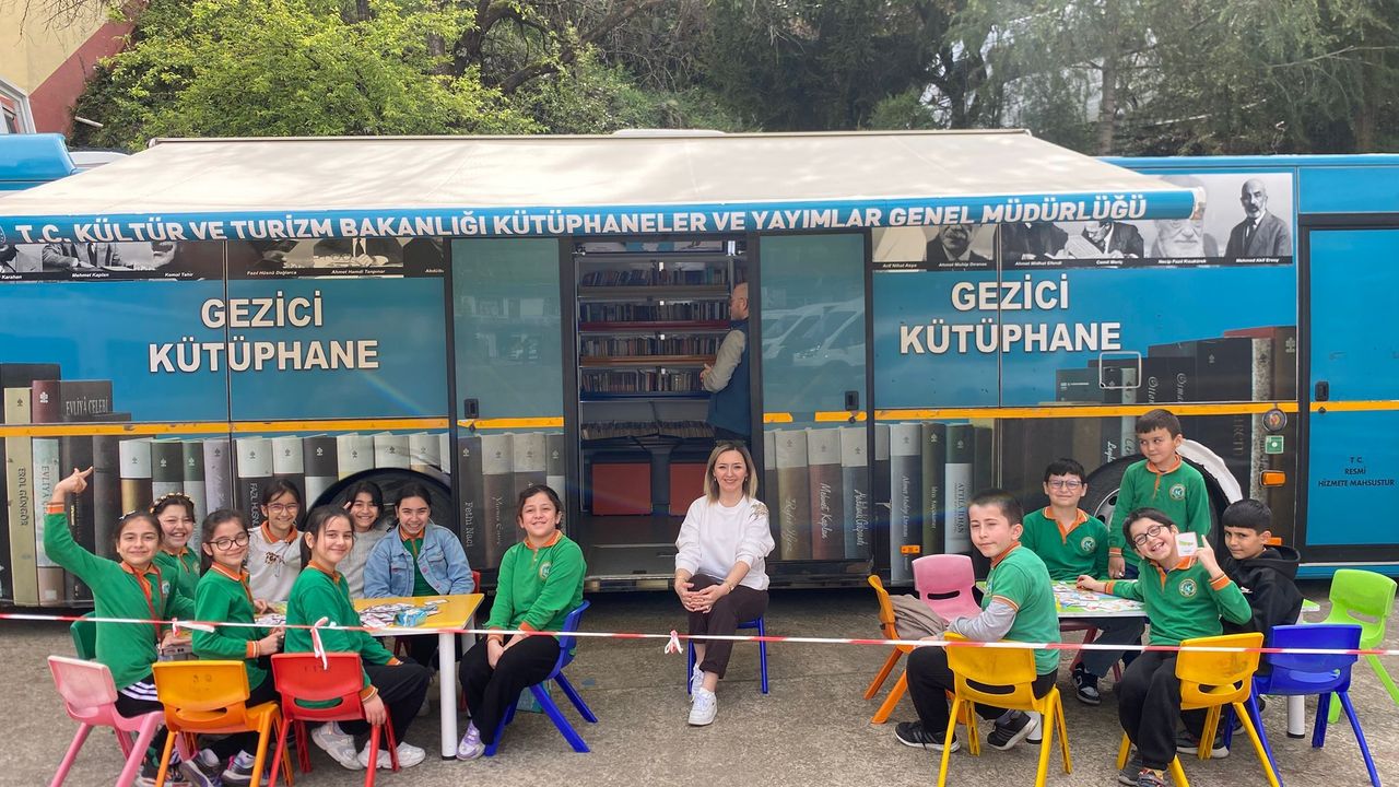 İlçe Halk Kütüphanesince organize edilen etkinlikte Mustafa Kemal İlkokulu öğrencileri, okul bahçesinde konuşlandırılan gezici kütüphaneden faydalandı.