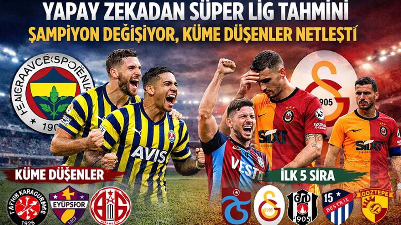 Trendyol Süper Lig'de ikinci yarı heyecanı, 18.hafta maçlarıyla başladı. Galatasaray, 43 puanla liderliğini sürdürürken, Fenerbahçe 42 puanla 2.sırada yer aldı. Yapay zeka 2025-2026 sezonunu simüle etti. Yapılan tahminlerde ligin şampiyonu, ilk 5 sırası ve küme düşecek takımlar belirlendi. İşte ayrıntılar...