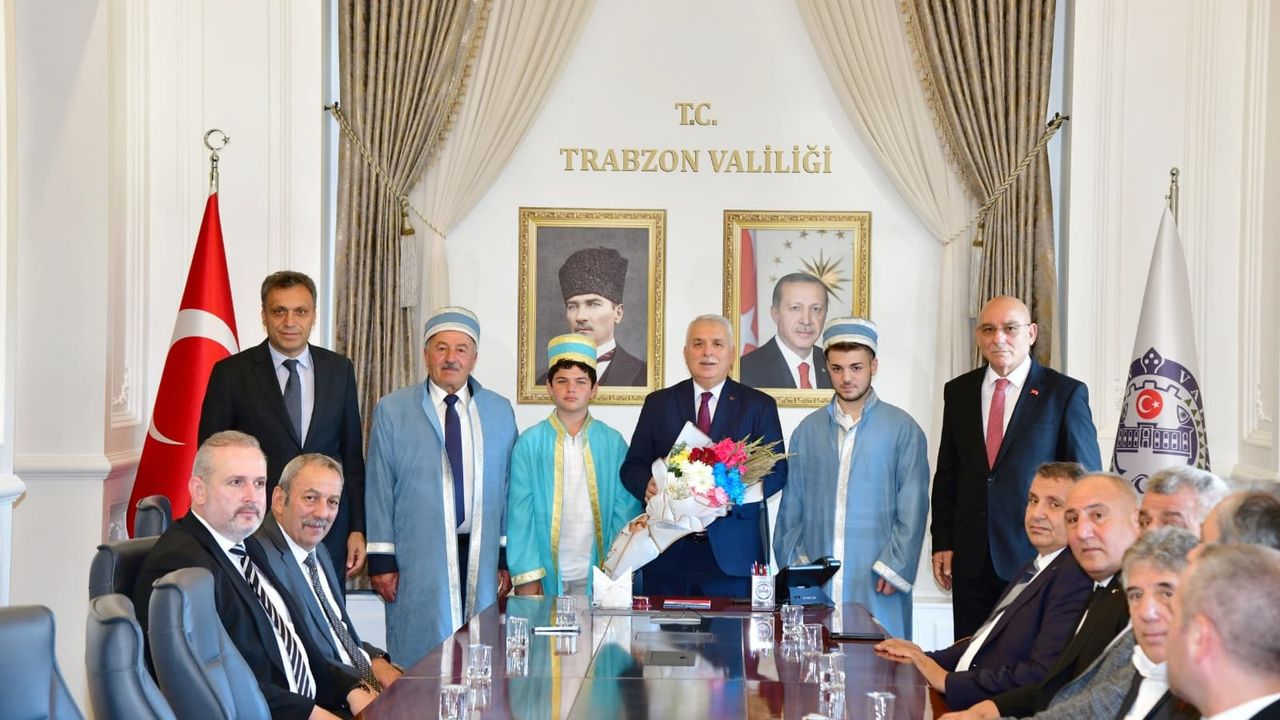 TESOB Başkanı Metin Kara, Trabzon Ticaret İl Müdürü Kasım Tiryaki, TESOB Yönetim Kurulu üyeleri Mustafa Özcelep, Mustafa Pehlivan, Temel Korkmaz, Mehmet Coşkun Zihni, Trabzon Kuyumcular ve Saatçiler Esnaf ve Sanatkarlar Odası Başkanı Ali Yazıcı, Akçaabat Esnaf ve Sanatkarlar Odası Başkanı Yaşar Sivrikaya, Türkiye’de ve Trabzon’da 2025 Yılının Ahisi seçilen taş oyma ustası Hayri Dertlioğlu, Türkiye’de ve Trabzon’da Yılın Kalfası seçilen hasır işlemeci Metehan Arslan ve Trabzon’da Yılın Çırağı seçilen ayakkabı imalatçısı Eren Bahadır’dan oluşan heyet, Trabzon Valisi Aziz Yıldırım’ı ziyaret etti. Vali Yıldırım, Türkiye çapında alınan ödüller nedeniyle TESOB heyetini kutlayarak, başarılarının devamını diledi.
