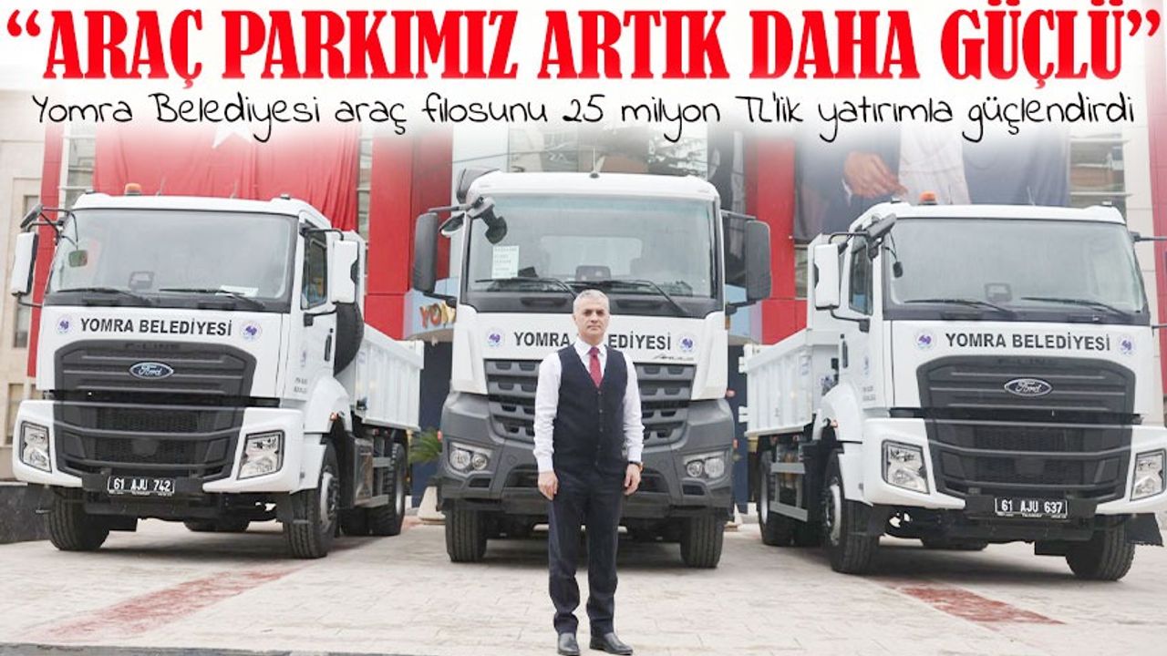 Yomra Belediyesi, artan nüfus ve genişleyen hizmet alanına daha hızlı ve etkili yanıt verebilmek için araç filosunu güçlendirme çalışmalarını sürdürüyor. Son olarak, belediye araç parkına 25 milyon TL bedelle 3 adet yeni kamyon eklendi. Araçların bedelinin peşin olarak ödendiği belirtilirken, yapılan yatırımın hem hizmet kalitesine hem de belediyenin ekonomik verimliliğine katkı sunacağı ifade edildi.