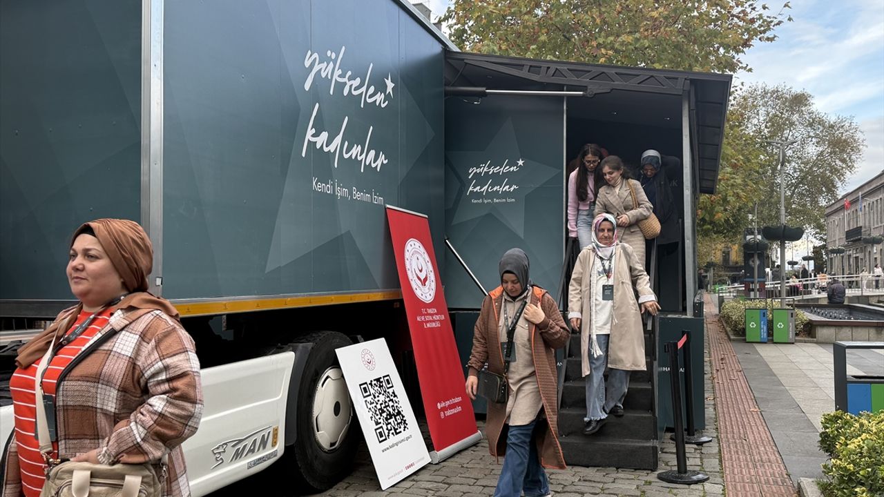 Atatürk Alanı'nda konuşlanan eğitim tırında, 2 oturumda 90 kadına girişimcilik eğitimi verildi.