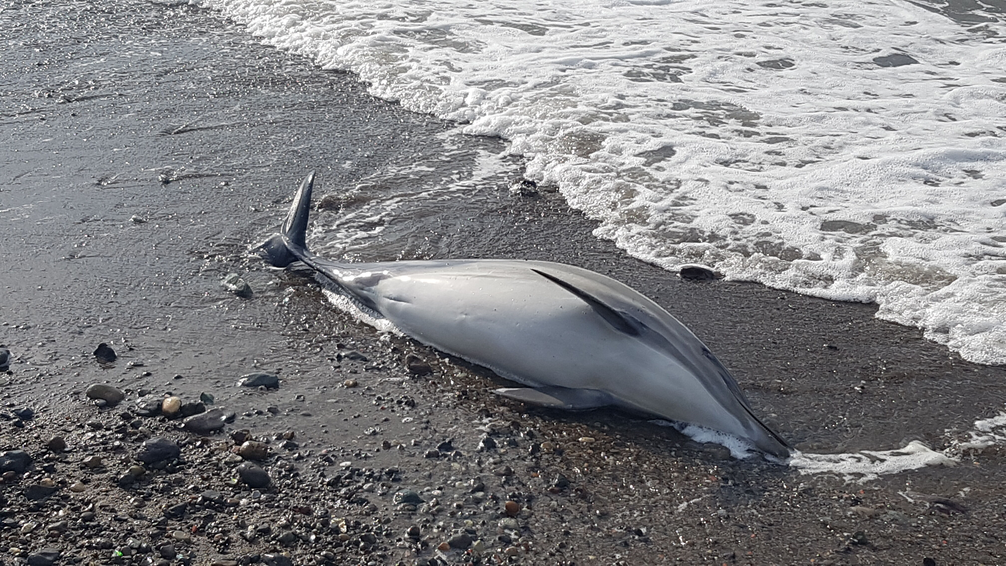 Deniz kenarındaki üç beş keşiden oluşan grup dikkatimi çekince, kısa bir mola verip baktım. Sahile boylu boyunca uzanmış yunus balığını fark ettim.